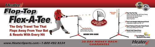 The Flop Top Travel Tee is a quick-assembly, portable batting tee that makes it easy to practice your hitting anywhere. The innovative Flop Top design means the tee will never tip over.